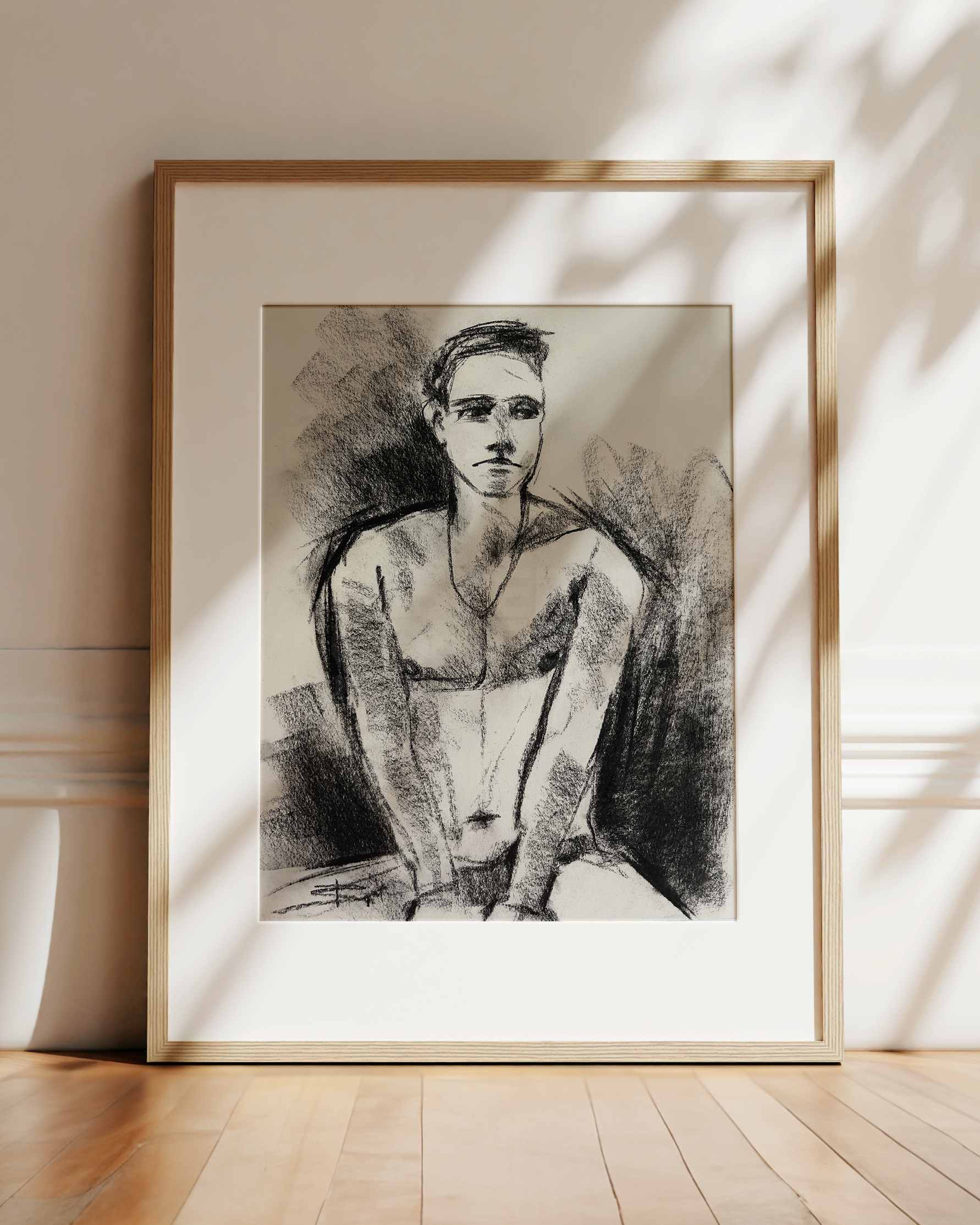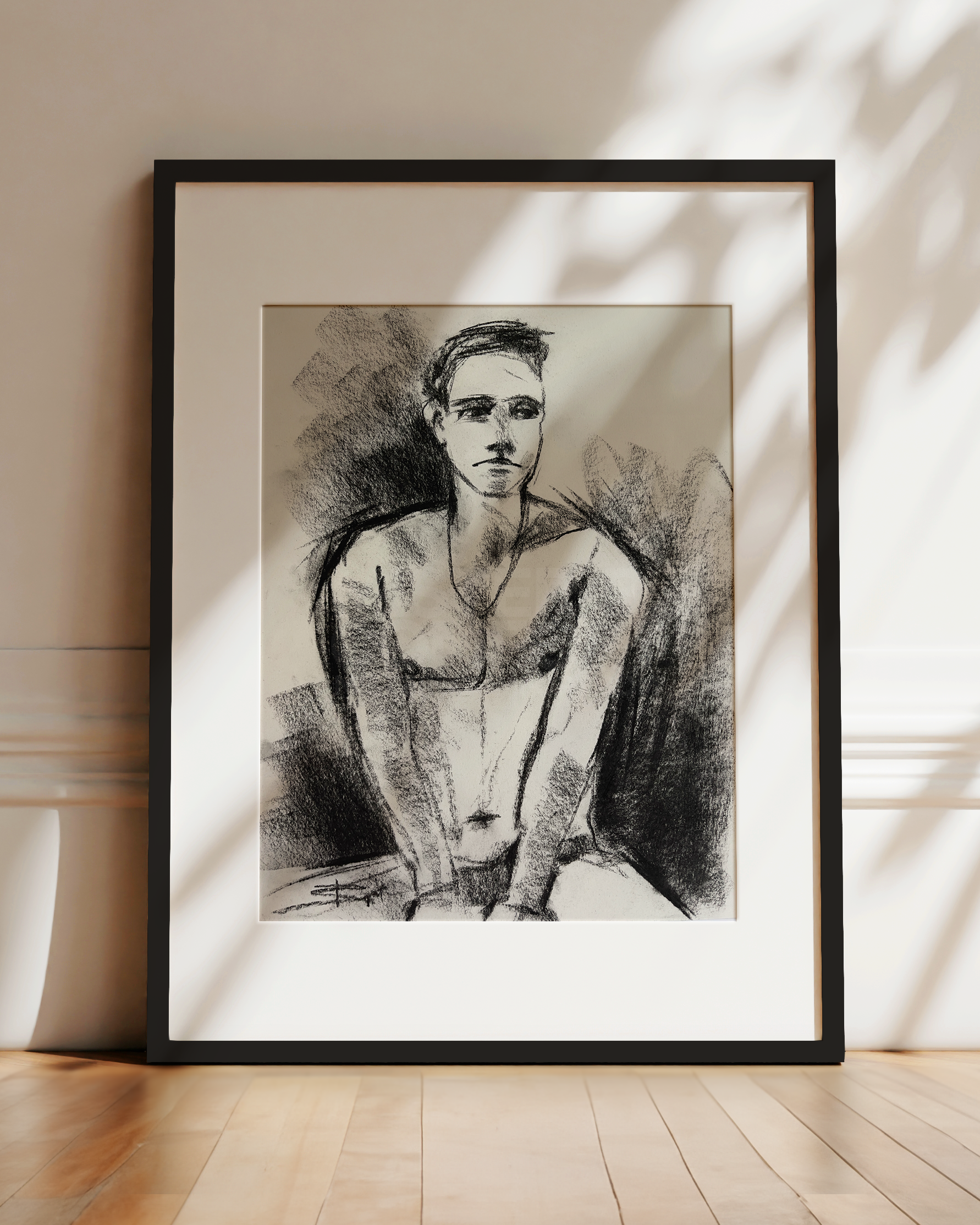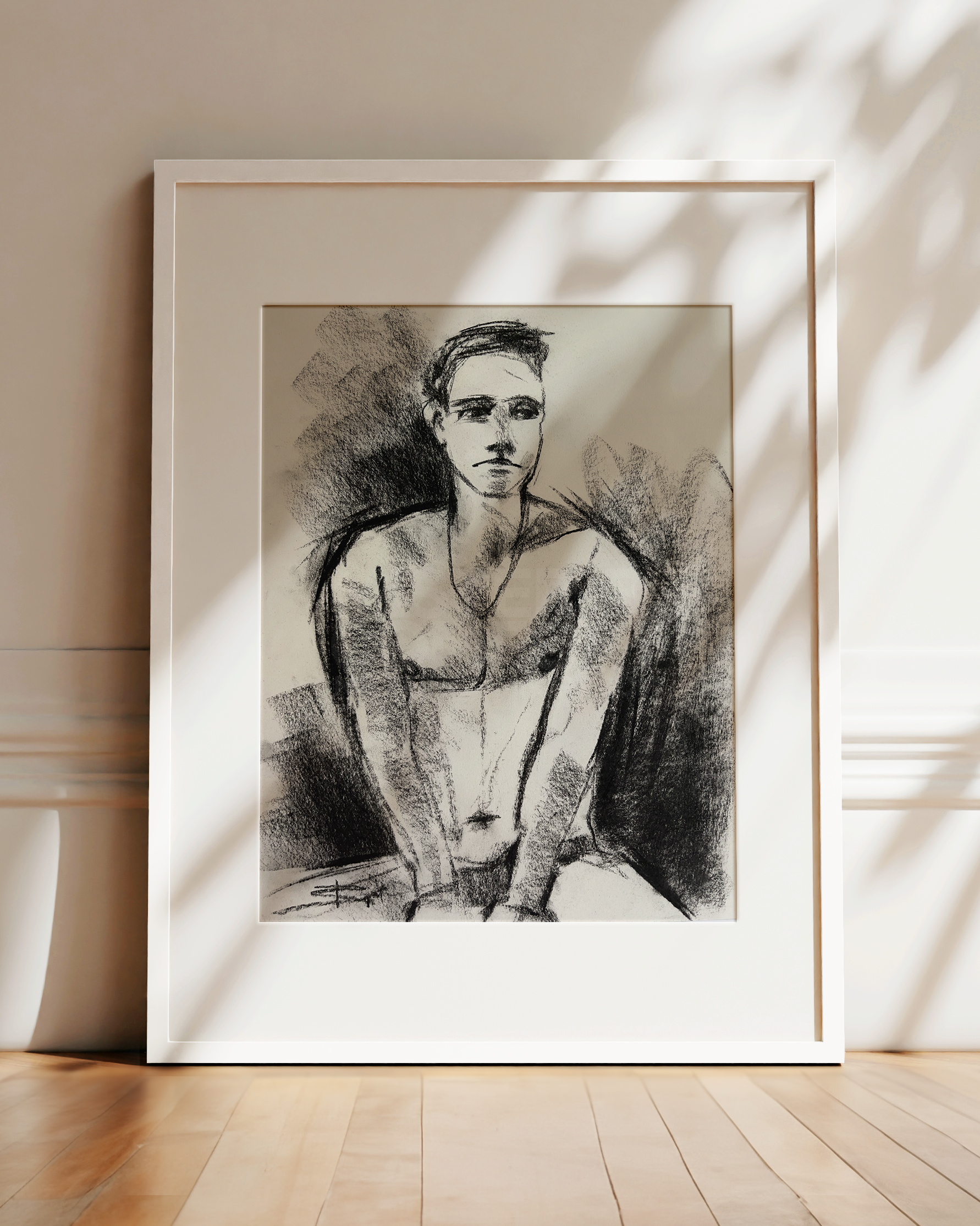 Original signed charcoal life drawing on Canson® premium matte paper by Brad Comfort.